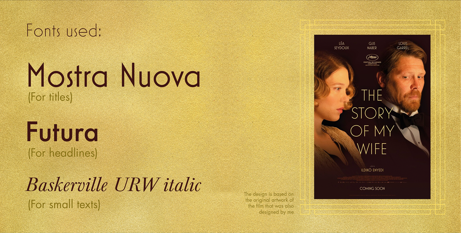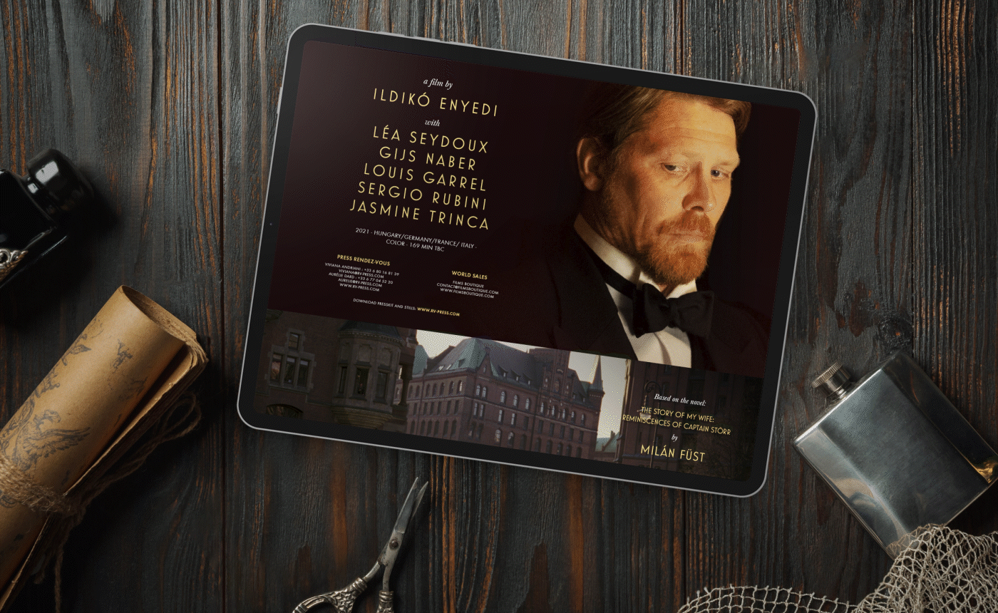 This press kit was made for the premiere of The Story of My Wife, directed by Ildikó Enyedi. I had the opportunity to also work on the poster, the main titles of the film.